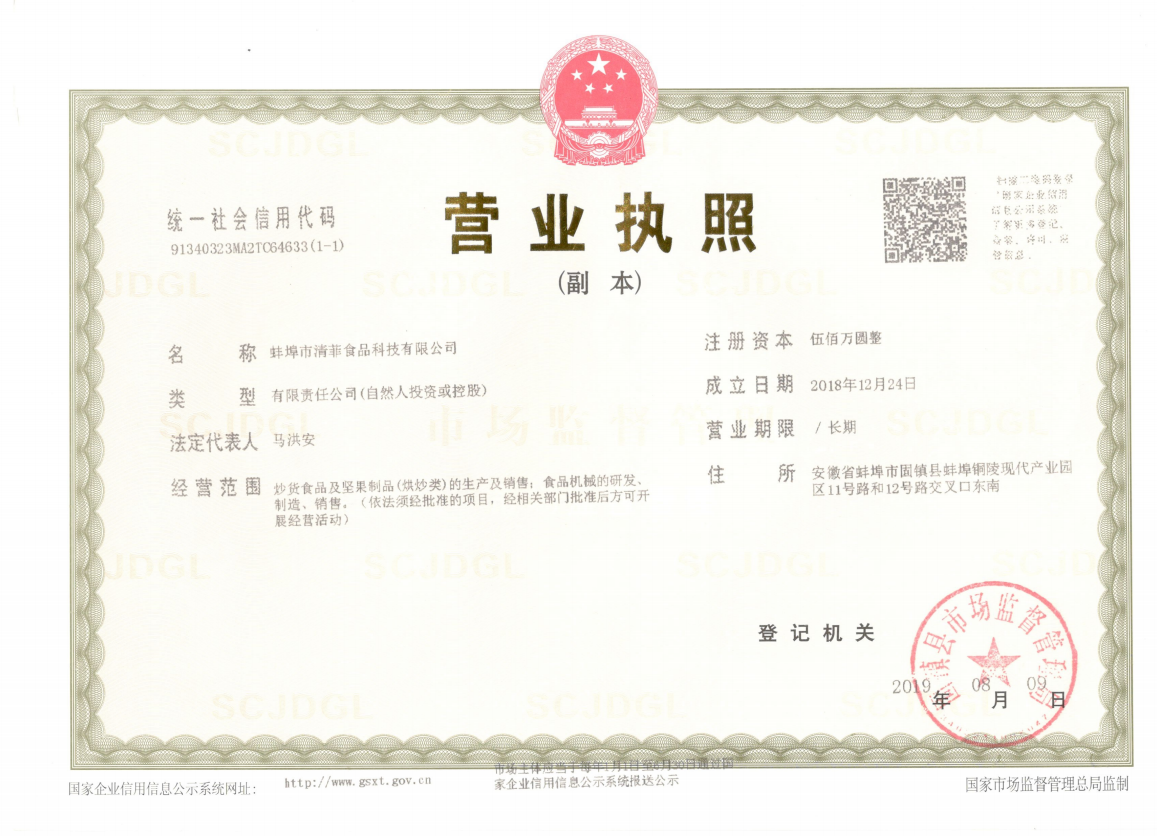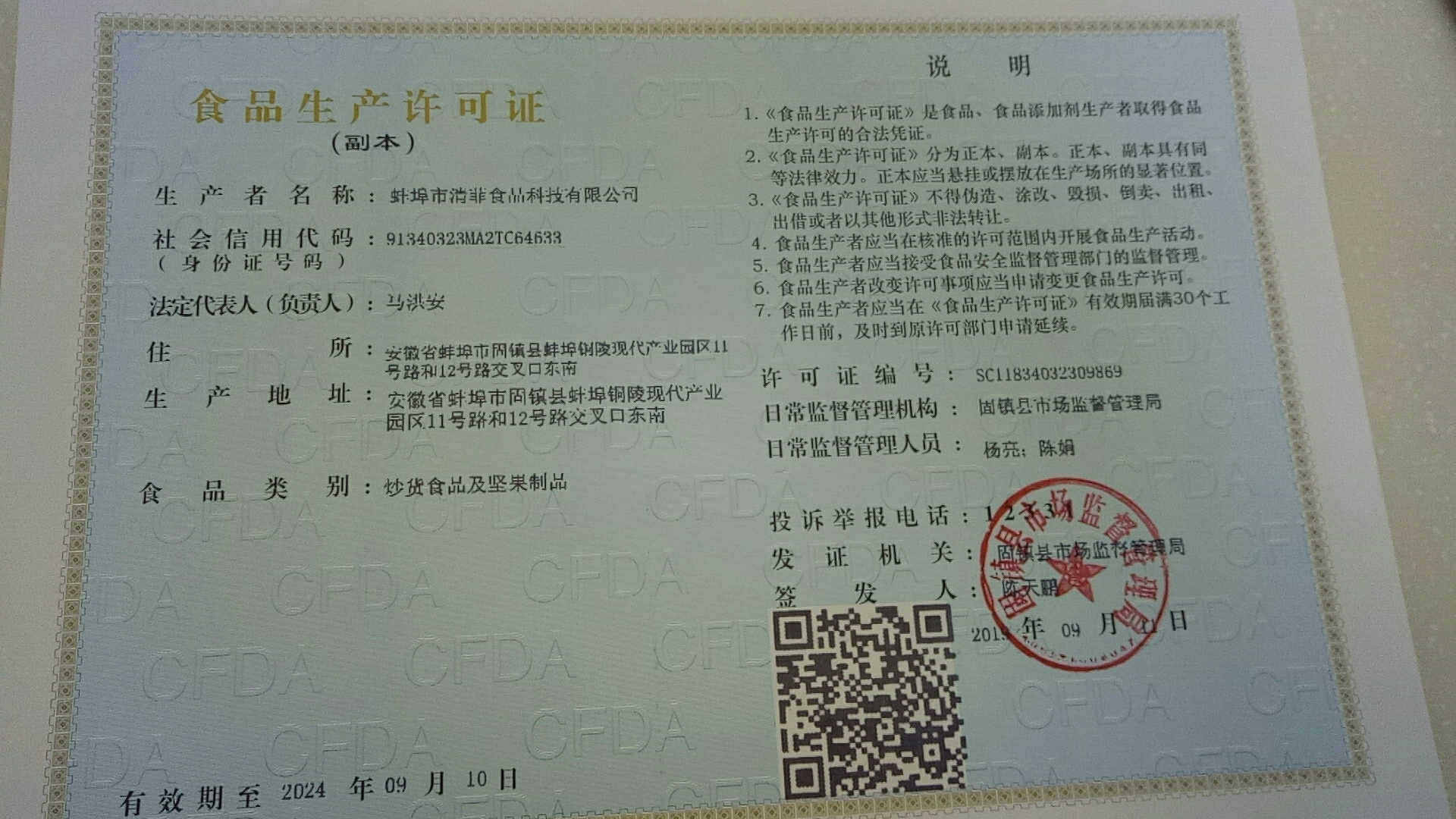 蚌埠市清菲食品科技有限公司前身為蚌埠市正味食品有限公司。公司自成立以來專門從事堅(jiān)果炒貨食品的生產(chǎn)和銷售,產(chǎn)品種類齊全、品質(zhì)優(yōu)良。主要產(chǎn)品有葵花籽:脫皮瓜子、焦糖瓜子、核桃瓜子;西瓜子:話梅西瓜子、甘草西瓜子;五香南瓜子及花生。公司坐落在蚌埠市固鎮(zhèn)縣蚌埠銅陵現(xiàn)代產(chǎn)業(yè)園區(qū)內(nèi),總占地30余畝,交通便捷,環(huán)境優(yōu)美,獨(dú)立的生產(chǎn)區(qū)、辦公區(qū)、生活區(qū)。本公司下設(shè)綜合部、財(cái)務(wù)部、研發(fā)部、生產(chǎn)部、質(zhì)檢部、銷售部等。公司嚴(yán)格按照中華人民共和國《食品安全法》,全面執(zhí)行食品安全國家標(biāo)準(zhǔn)及食品生產(chǎn)許可管理辦法等規(guī)定。為確保食品安全,本公司在本地業(yè)內(nèi)率先建立起了以ISO9001和HACCP質(zhì)量保證體系為基礎(chǔ)的質(zhì)量管理體系和食品安全管理體系。根據(jù)行業(yè)特點(diǎn),公司制定和實(shí)施了嚴(yán)格的質(zhì)量控制措施,并形成了從供方管理、入廠檢測、在線檢測、成品出廠檢測,到市場售中檢測的全流程質(zhì)量監(jiān)控體系,切實(shí)將嚴(yán)格的質(zhì)量管理落實(shí)到原料采購、產(chǎn)品設(shè)計(jì)、生產(chǎn)加工、產(chǎn)品銷售、售后服務(wù)等各個(gè)環(huán)節(jié)。堅(jiān)持以質(zhì)量為保障,以市場為導(dǎo)向,以效益為目的,滿足顧客要求,企業(yè)持續(xù)發(fā)展。以嚴(yán)格的管理、安全的產(chǎn)品、優(yōu)良的服務(wù)確保產(chǎn)品合格率百分之百,顧客滿意率百分之九十八的承諾。本公司在長期的發(fā)展過程中,除了注重產(chǎn)品的研發(fā)與市場拓展,一直十分重視自身無形資產(chǎn)的保護(hù)與積累,公司成立初期,就已注冊(cè)“閑來客”商標(biāo),并設(shè)計(jì)生動(dòng)形象的logo。